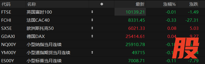 周二盘前,美股三大股指期货齐跌七星配资,欧洲主要指数涨跌不一。截至发稿,纳斯达克100指数期货跌0.18%,道指期货跌0.19%,标普500指数期货跌0.11%。